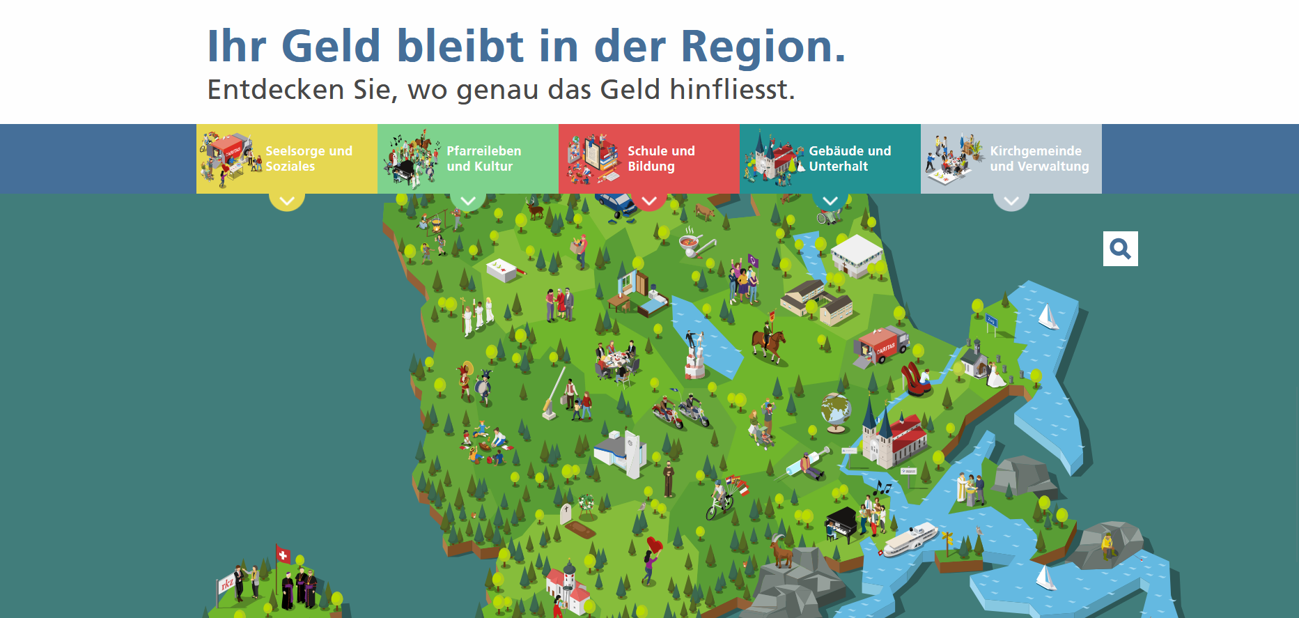 Die Idee kommt aus St. Gallen. Die Website kirchensteuern-sei-dank.ch zeigt auf, welche Leistungen die Kirche erbringt. Auf einer interaktiven Karte können die Informationen nach Themen und Orten abgerufen werden.